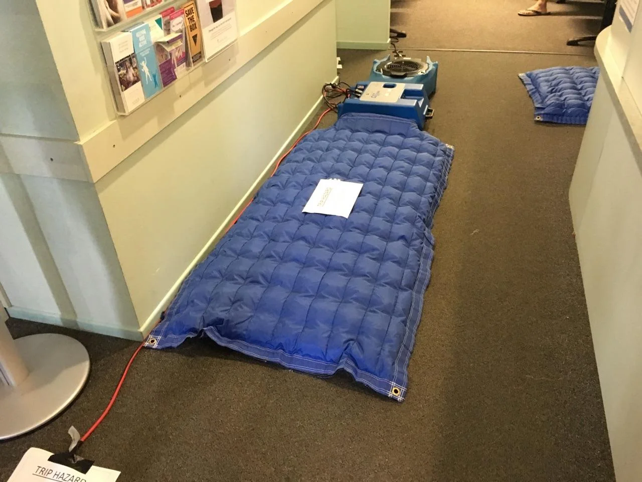 Superior Cleaning and restoration services were called out to a medical centre that had a leak from the ceiling and wet 2 areas of the carpet and timber subfloor.